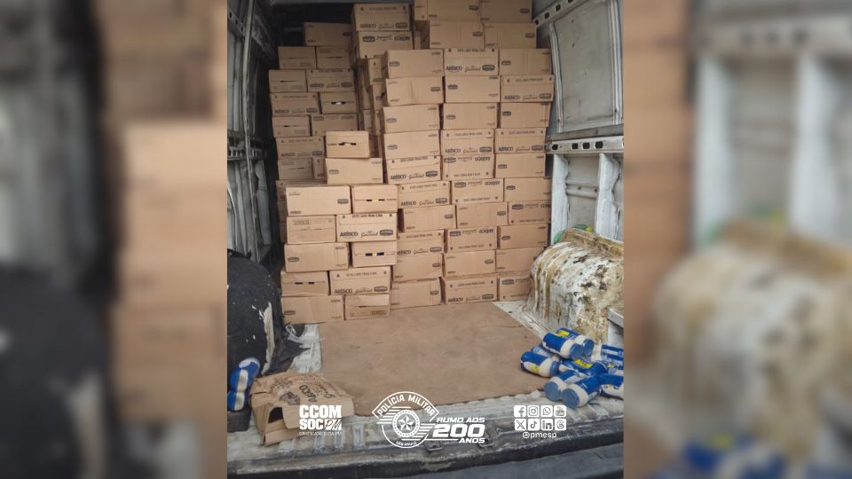 Ao chegarem ao local, os policiais visualizaram três indivíduos transferindo produtos de um veículo de carga. Ao perceberem a presença das viaturas, os homens tentaram fugir a pé, mas um deles foi alcançado e detido.