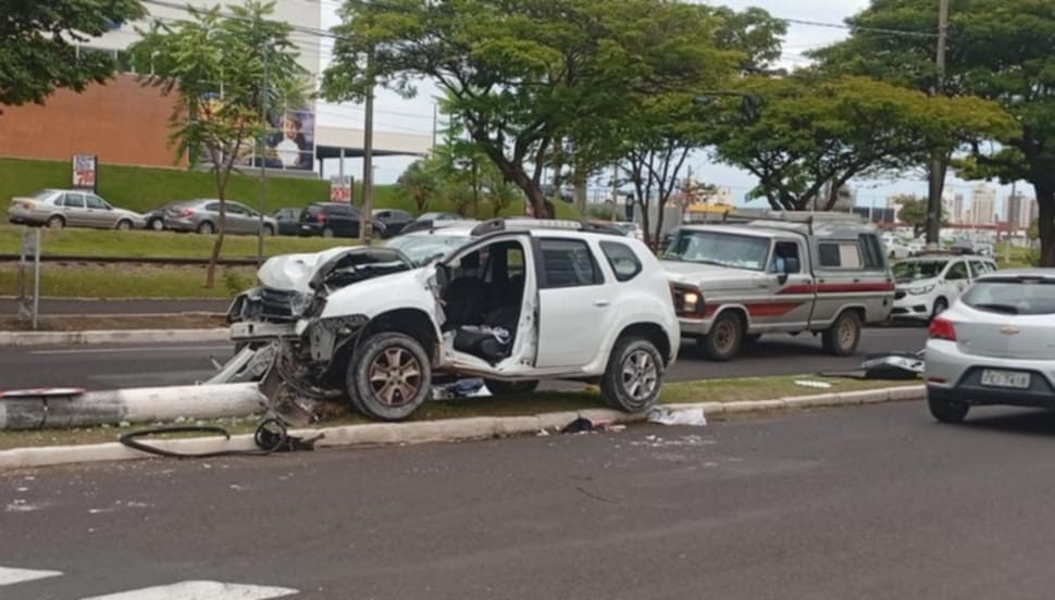 Motorista fica ferido após colisão em poste de avenida em Marília