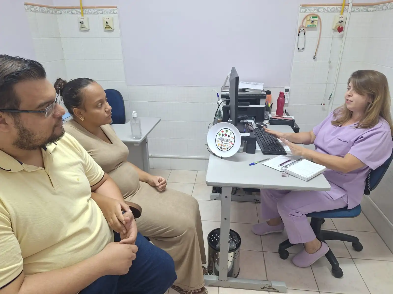 Ela contou que apresentou diabetes gestacional, razão que levou à USF Parque das Nações a encaminhá-la para consulta nutricional na maternidade. “Aqui é muito tranquilo, então recebo uma atenção maior, com calma, me sino acolhida e segura”, contou Lorena, que foi à consulta acompanhada do esposo, Gabriel Boas.