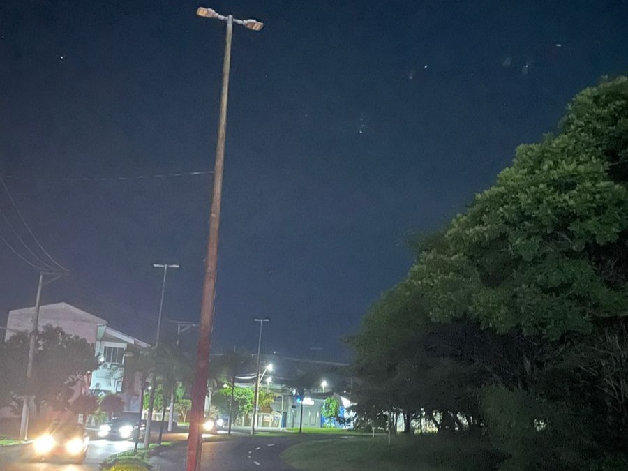 Postes desligados comprometem a segurança de moradores, motoristas e pedestres que circulam pelas vias.