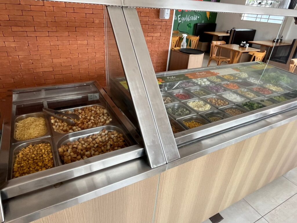 “São mais de 40 opções de salada, com proteína e carboidrato, além de seis tipos de molho que deixam a salada bem apetitosa”, destaca Vinicius, reforçando o foco em uma alimentação equilibrada para o dia a dia. A flexibilidade permite que o cliente monte seu prato conforme a preferência, gastando geralmente entre R$ 20 e R$ 35.