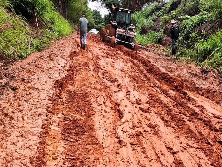 Imagens encaminhadas pelos moradores mostram trechos completamente tomados pela lama e veículos atolados. Em uma das cenas, uma caminhonete com tração 4×4 não consegue avançar pela estrada alagada. Em outra, nem mesmo um trator consegue retirar um carro preso no barro.