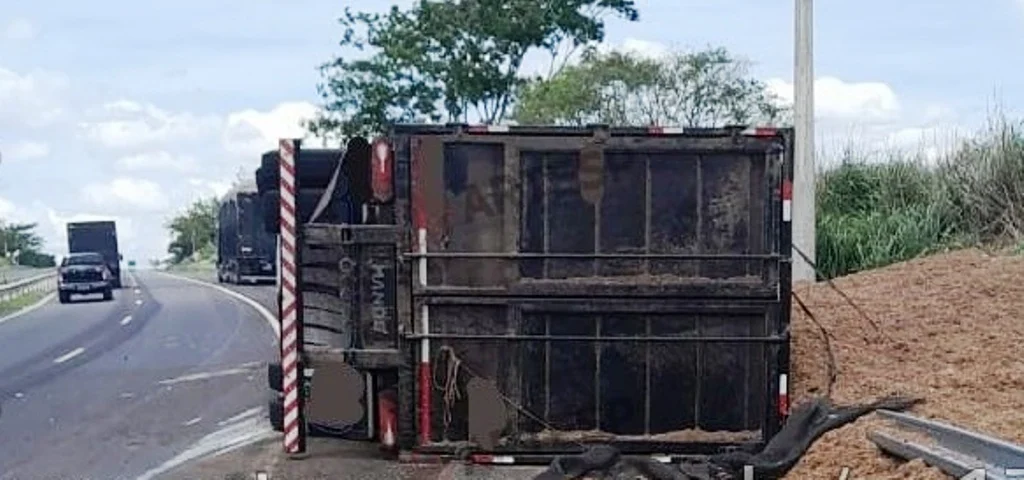 Tombamento de caminhão fere motorista na SP-333 em Marília