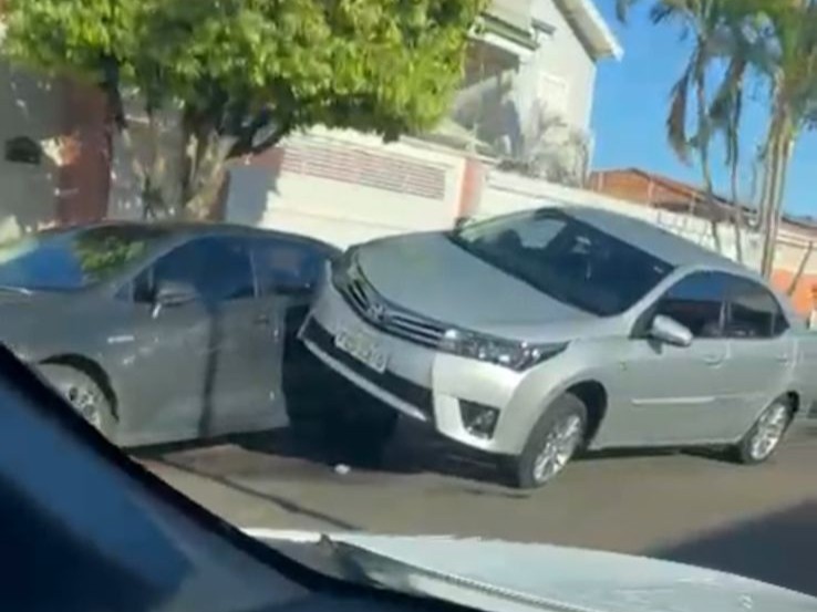 Uma colisão registrada na manhã desta segunda-feira (5) chamou a atenção de quem passava pela rua José Medina, no bairro Maria Izabel, zona leste da cidade. Um dos veículos acabou ficando parcialmente sobre o outro em uma área residencial tranquila (veja vídeo abaixo).