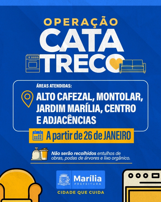 Serão atendidas nessa nova etapa de trabalho às áreas do Alto Cafezal, Montolar, Jardim Marília, Centro e Adjacências, com o recolhimento sendo realizado das 8h às 16h.