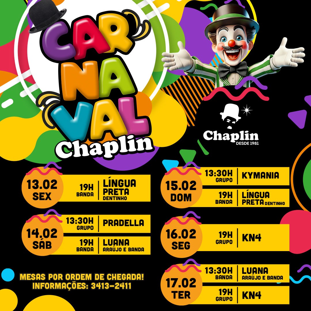Aliás, o cardápio é parte das atrações. O Chaplin mantém a linha completa de pratos, porções e lanches rápidos. O chope mais famoso da cidade, com 40 anos de tradição, é show à parte.