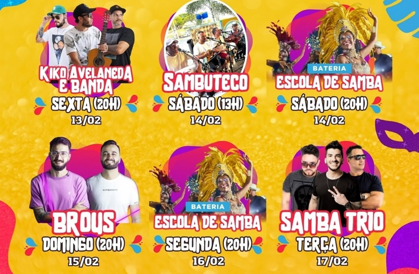 Aliás, a quarta-feira já teve ensaio com esquenta e animou o público que passou pelo local. Veja na imagem abaixo toda a programação.