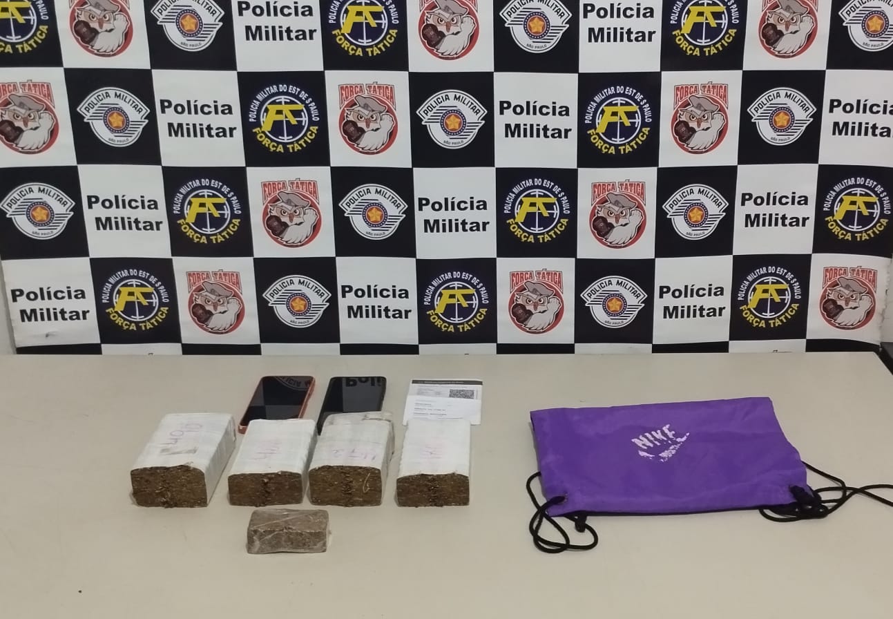 Durante a vistoria na sacola, os policiais localizaram cinco tijolos de maconha, que totalizaram 2,046 quilos da droga. O entorpecente, conforme registro policial, estava embalado e pronto para distribuição.