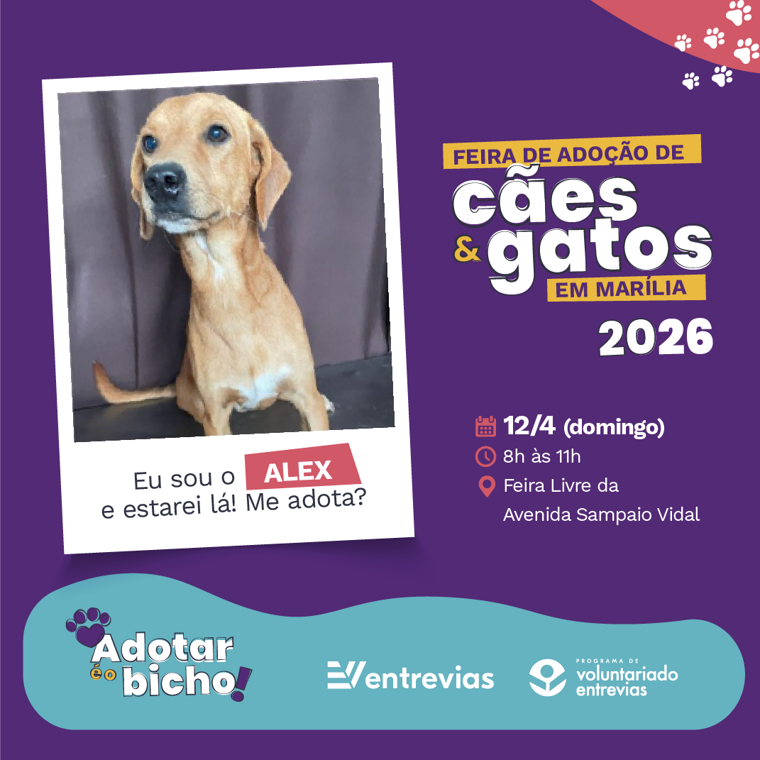 A Entrevias Concessionária de Rodovias promove, no próximo domingo, dia 12 de abril de 2026, mais uma edição da Feira de Adoção de Cães e Gatos do programa Adotar é o Bicho. O evento será realizado durante a Feira Livre da avenida Sampaio Vidal, em Marília, no período das 8h às 11h. Todos os pets disponíveis para adoção foram resgatados pelas equipes da concessionária nas rodovias administradas pela empresa, onde estavam em situação de risco.