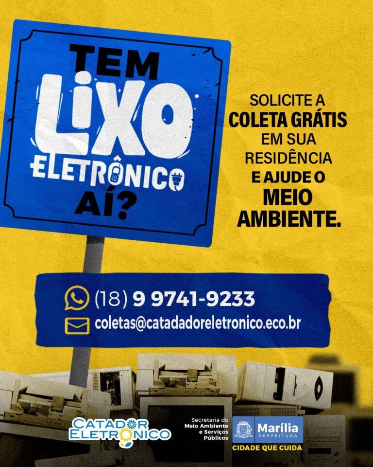 A Prefeitura de Marília ampliou o serviço gratuito de recolhimento de resíduos eletroeletrônicos, conhecido como “catador eletrônico”, com o objetivo de garantir o descarte adequado desses materiais e evitar impactos ambientais. Segundo a Secretaria Municipal do Meio Ambiente e Serviços Públicos, o serviço já atendeu 182 solicitações no segundo semestre do ano passado e início deste ano.