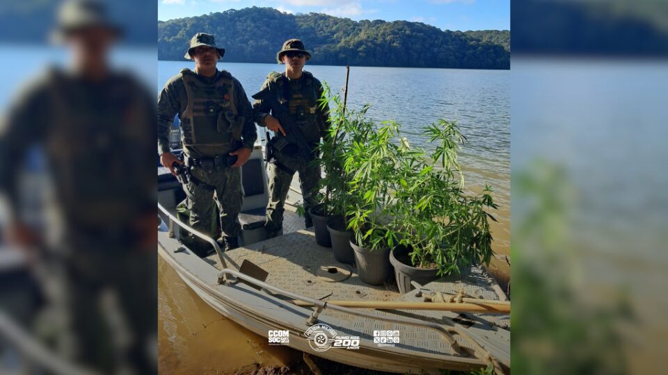 Nesta quarta-feira (15), durante patrulhamento náutico na Represa Billings, equipes do GEPAAR, pertencentes ao 1º Batalhão de Polícia Ambiental – 2ª Companhia, flagraram uma plantação clandestina de Cannabis sativa em área de mata próxima à Rua Mário Paulo Autuori.