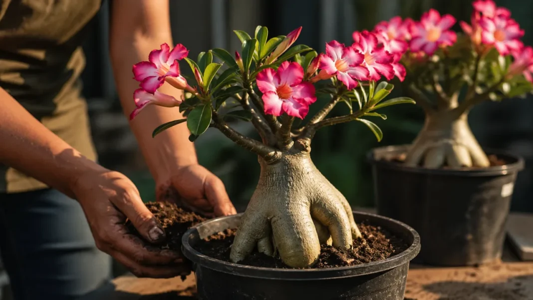 7 misturas de solo que aceleram a floração da rosa-do-deserto e evitam apodrecimento