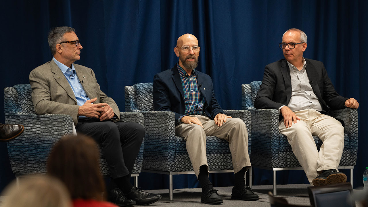 Foto: Frank Canova (meio) em apresentação na Auburn University. Joe McAdory/Auburn University.