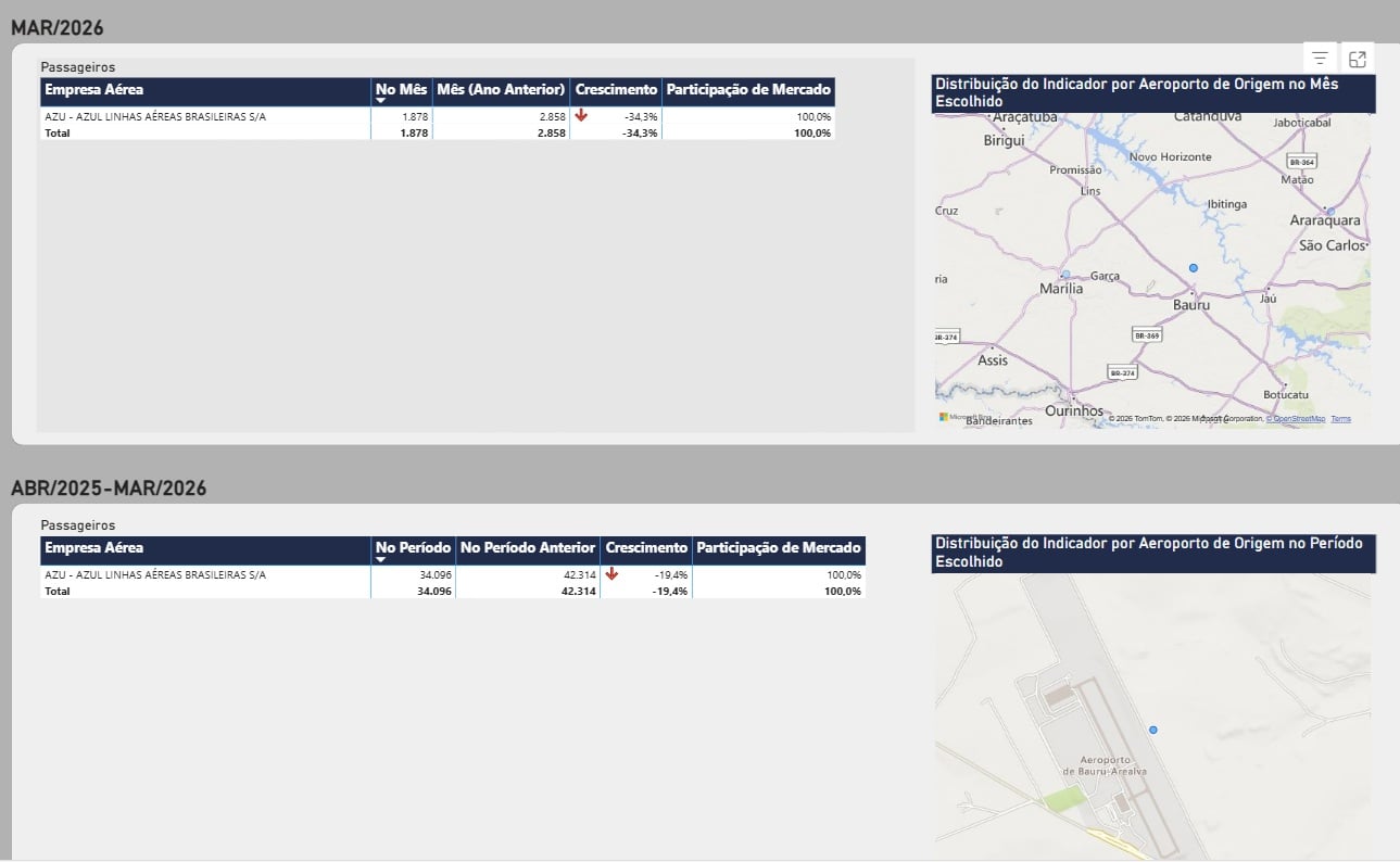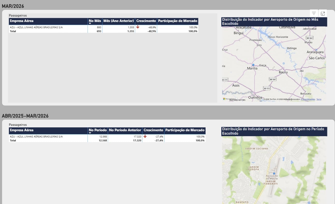 Apesar desses dados, o aeroporto de Marília registrou 693 passageiros, número menor que os 1.355 de fevereiro e queda de 48,9%.